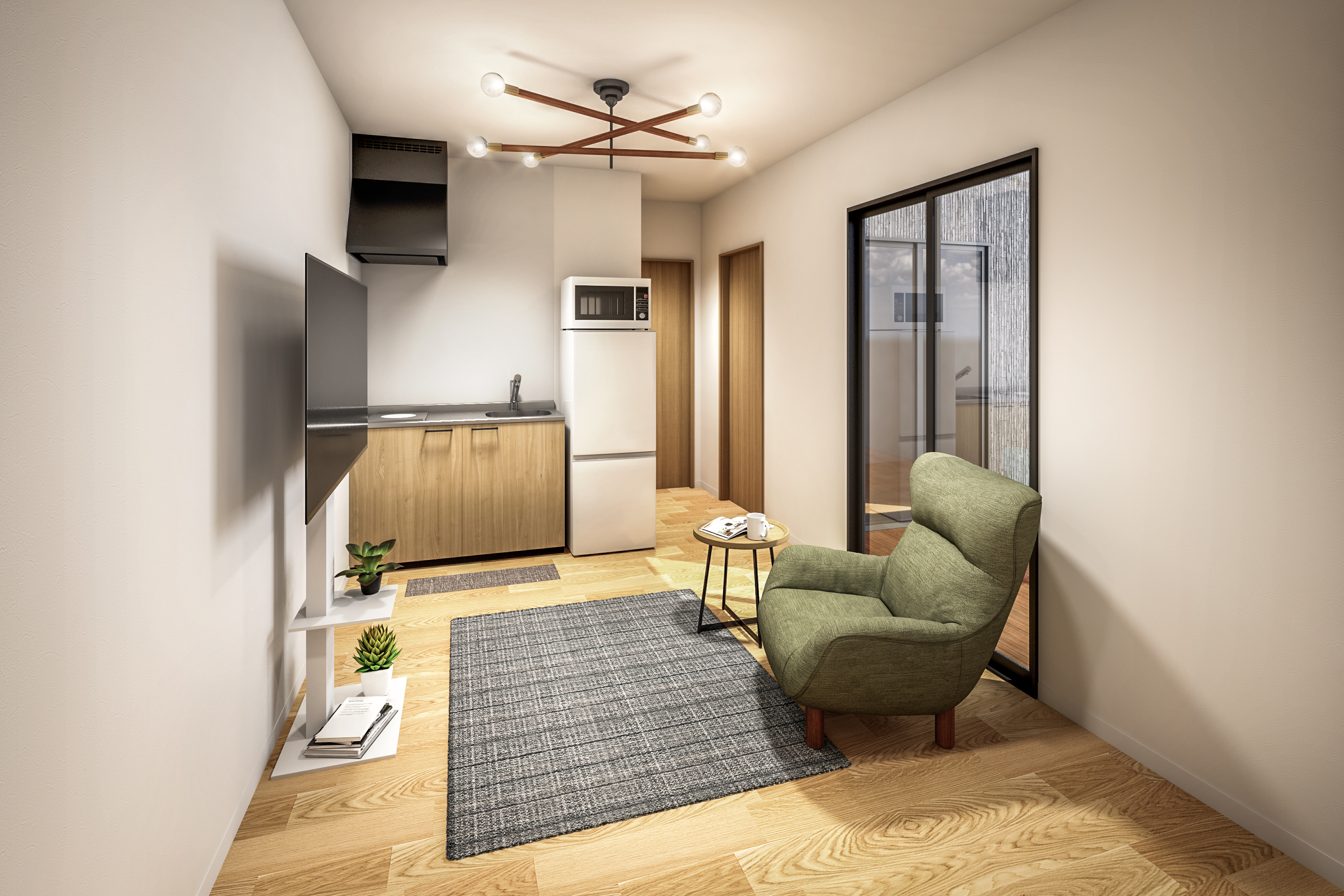 キッチンや浴室に加え収納スペースもあるため、まるでワンルームマンションのように暮らせます!