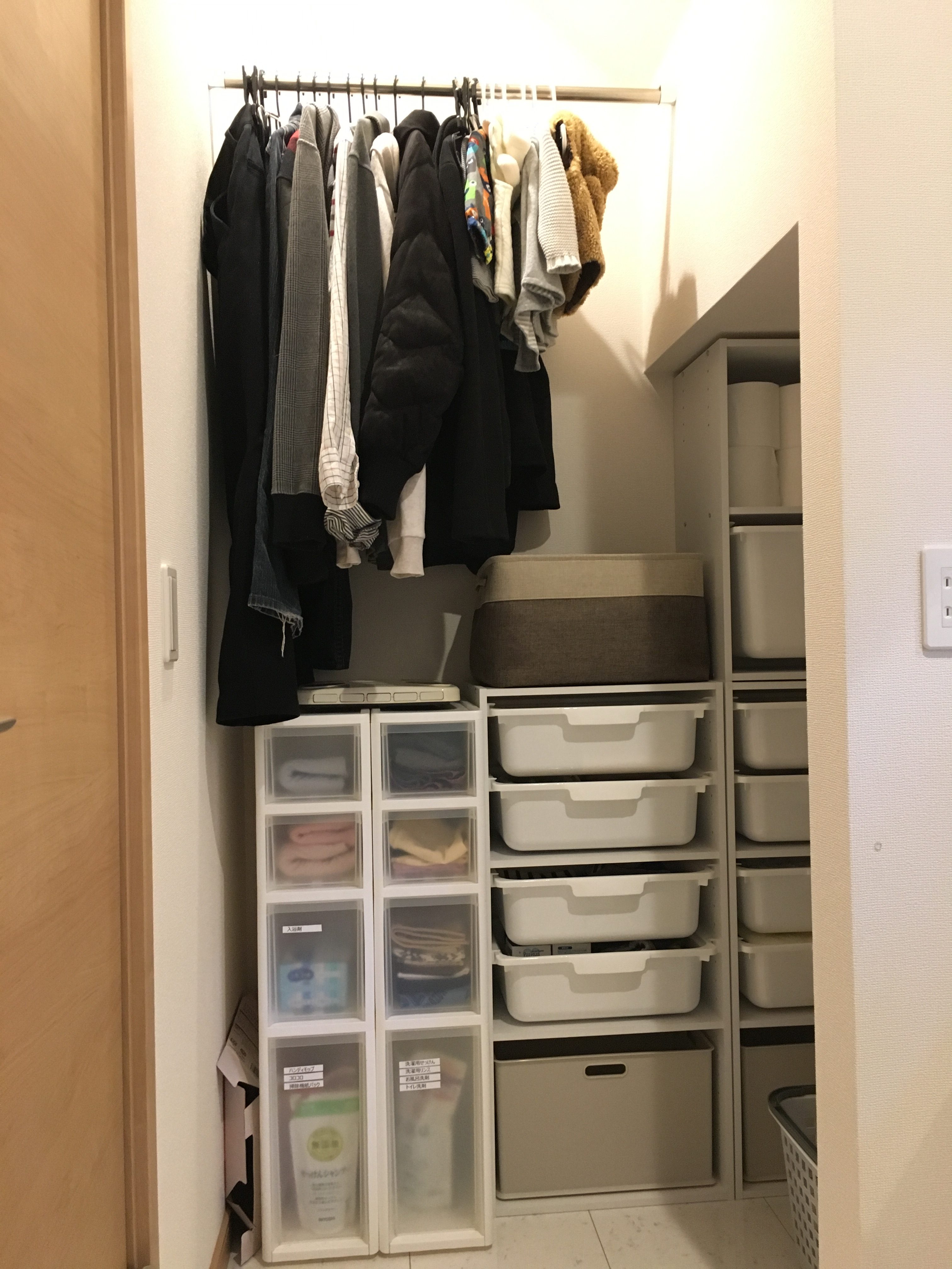 上の空間も無駄にすることなく、ポールを設置し、普段着ているアウターなどを掛けられるよう上手に工夫されています♪