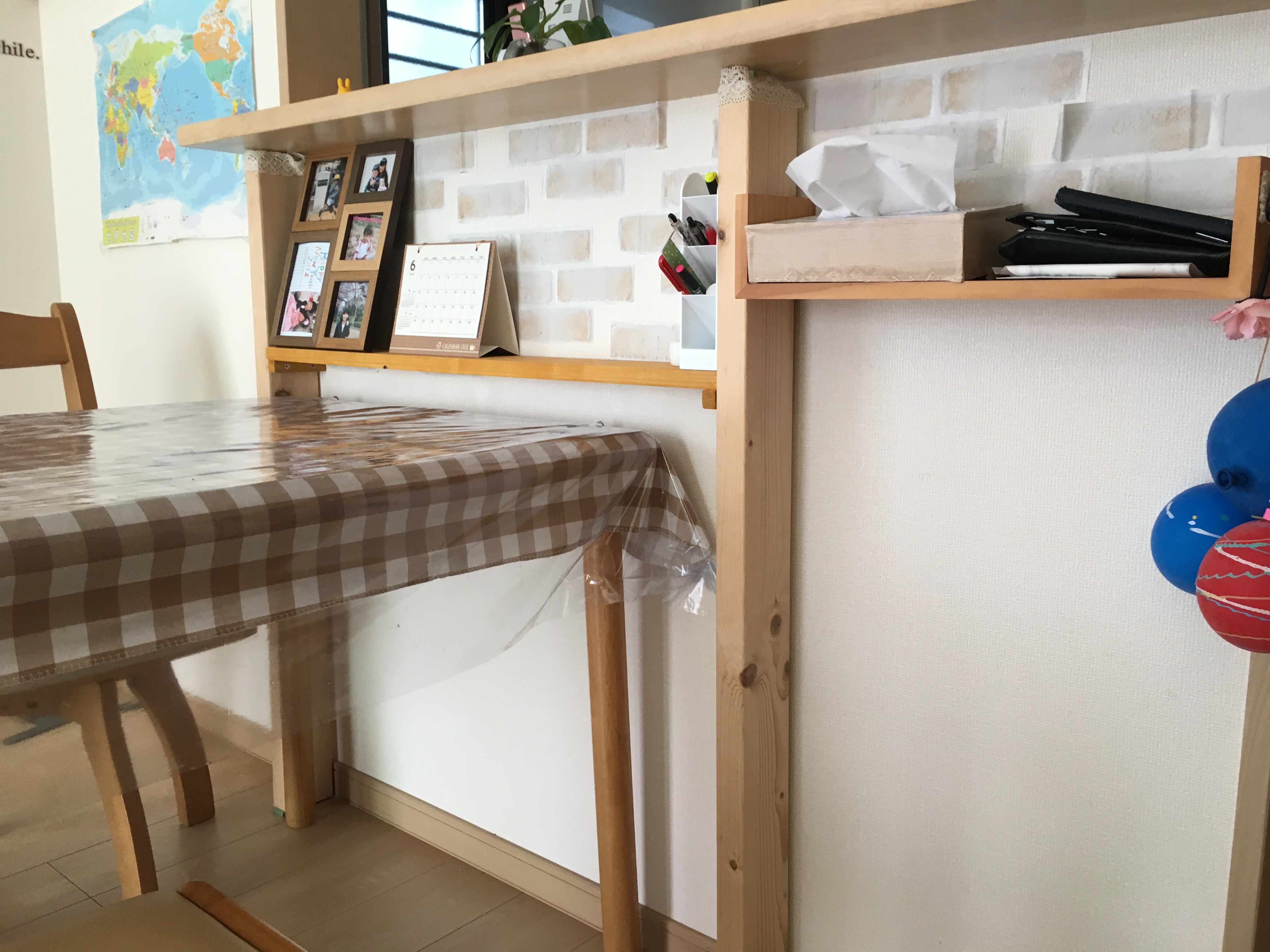 (※ディアウォールとは:穴を開けずに木材を使って天井側と床に突っ張って設置できるDIY用パーツ)