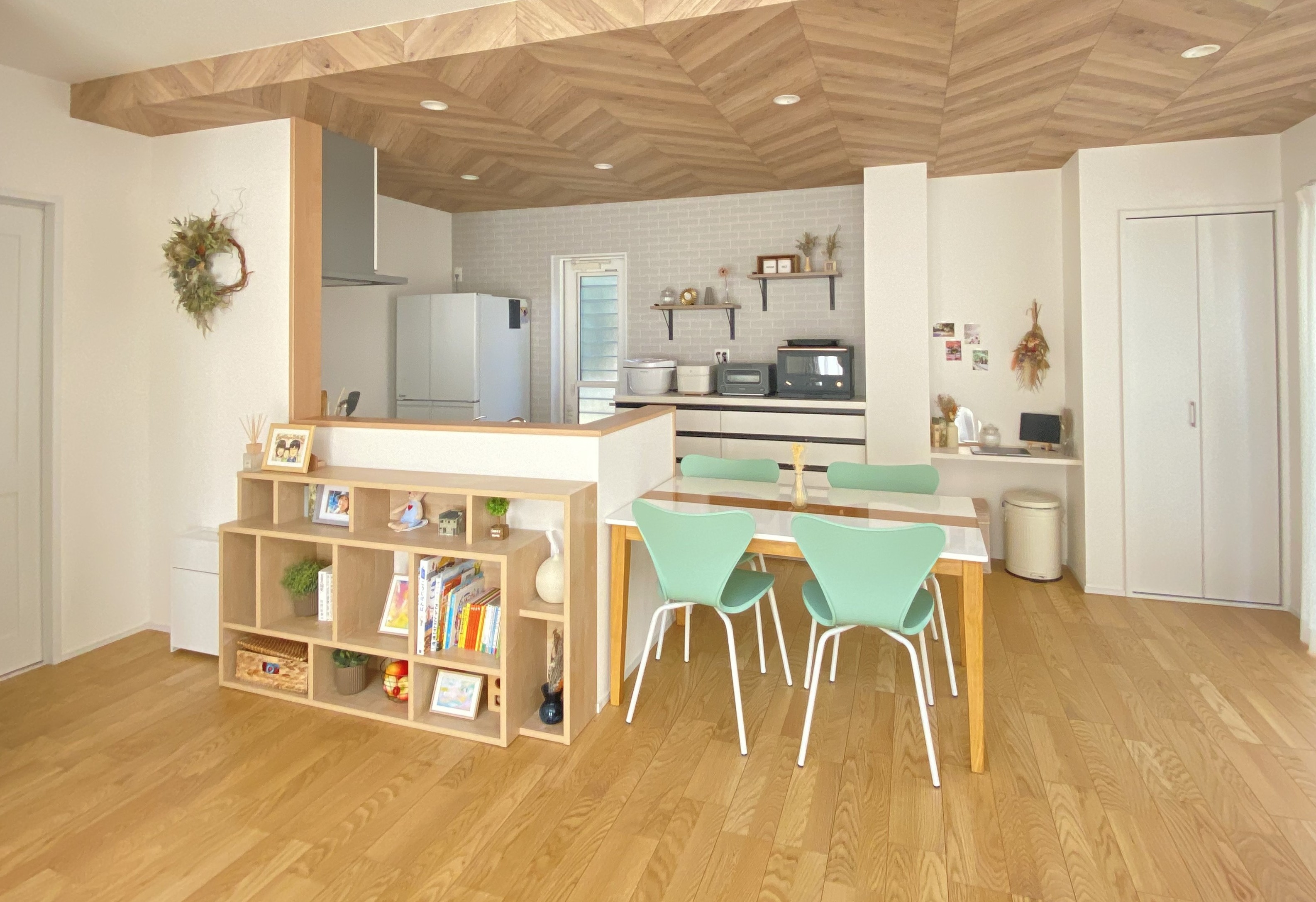 カウンター下に、オシャレで実用的な収納棚を設置されています。