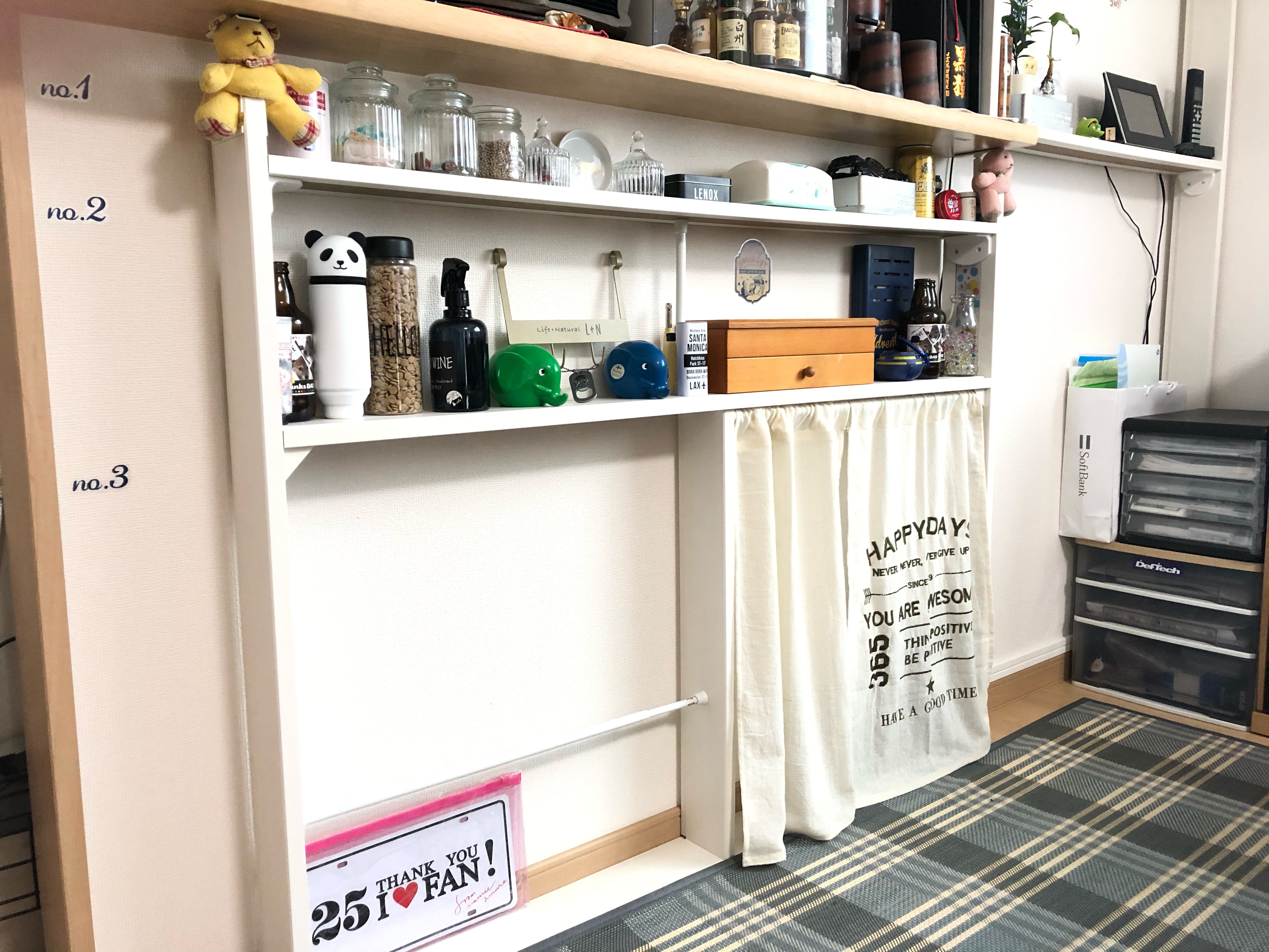 さらに、配線や機器類はカフェカーテンで目隠しするなど、