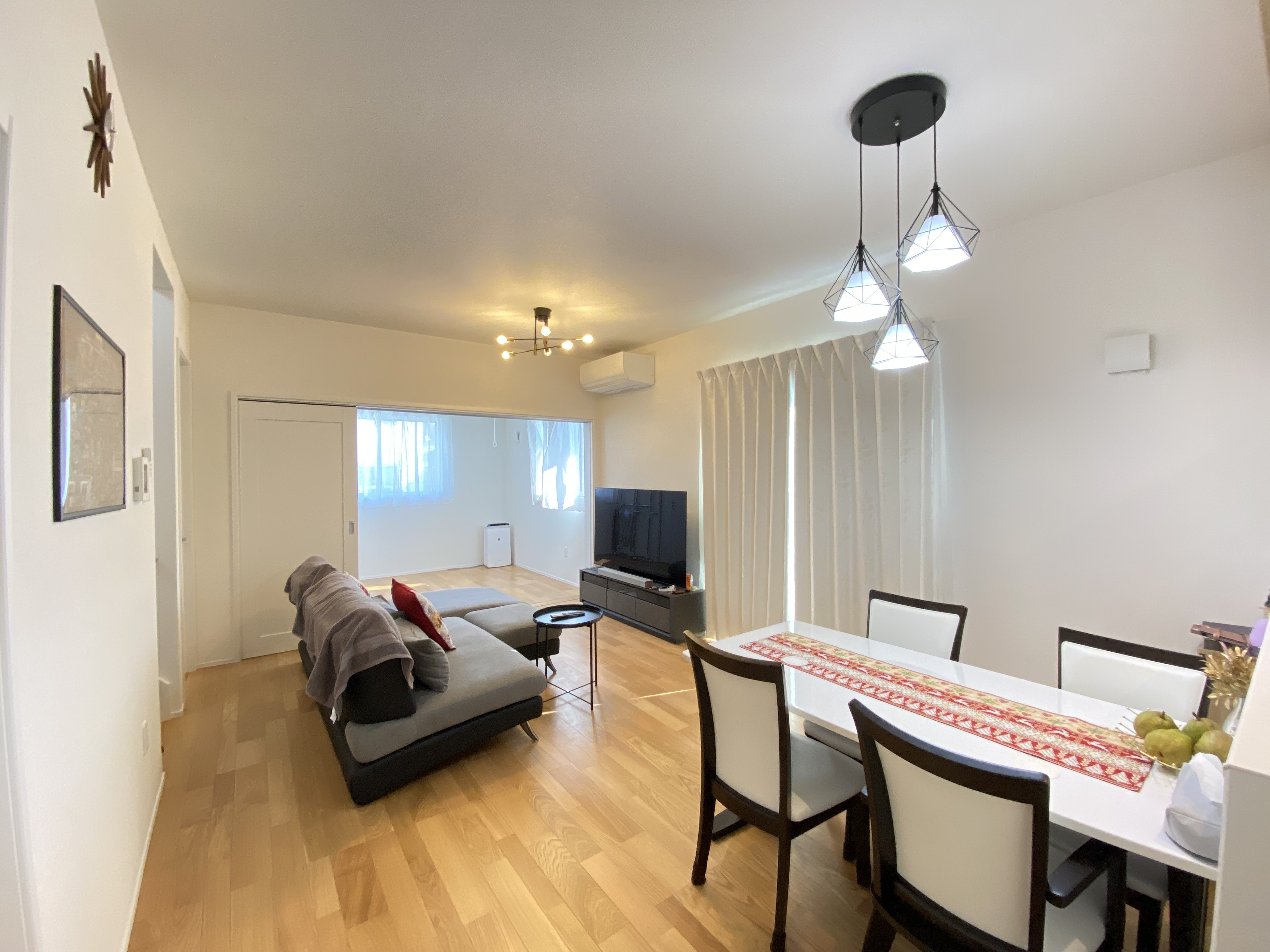 隣りの洋室は、基本的に仕切り戸を閉めることなく、リビングと一体化して使用されているのでかなり広々空間になっています。