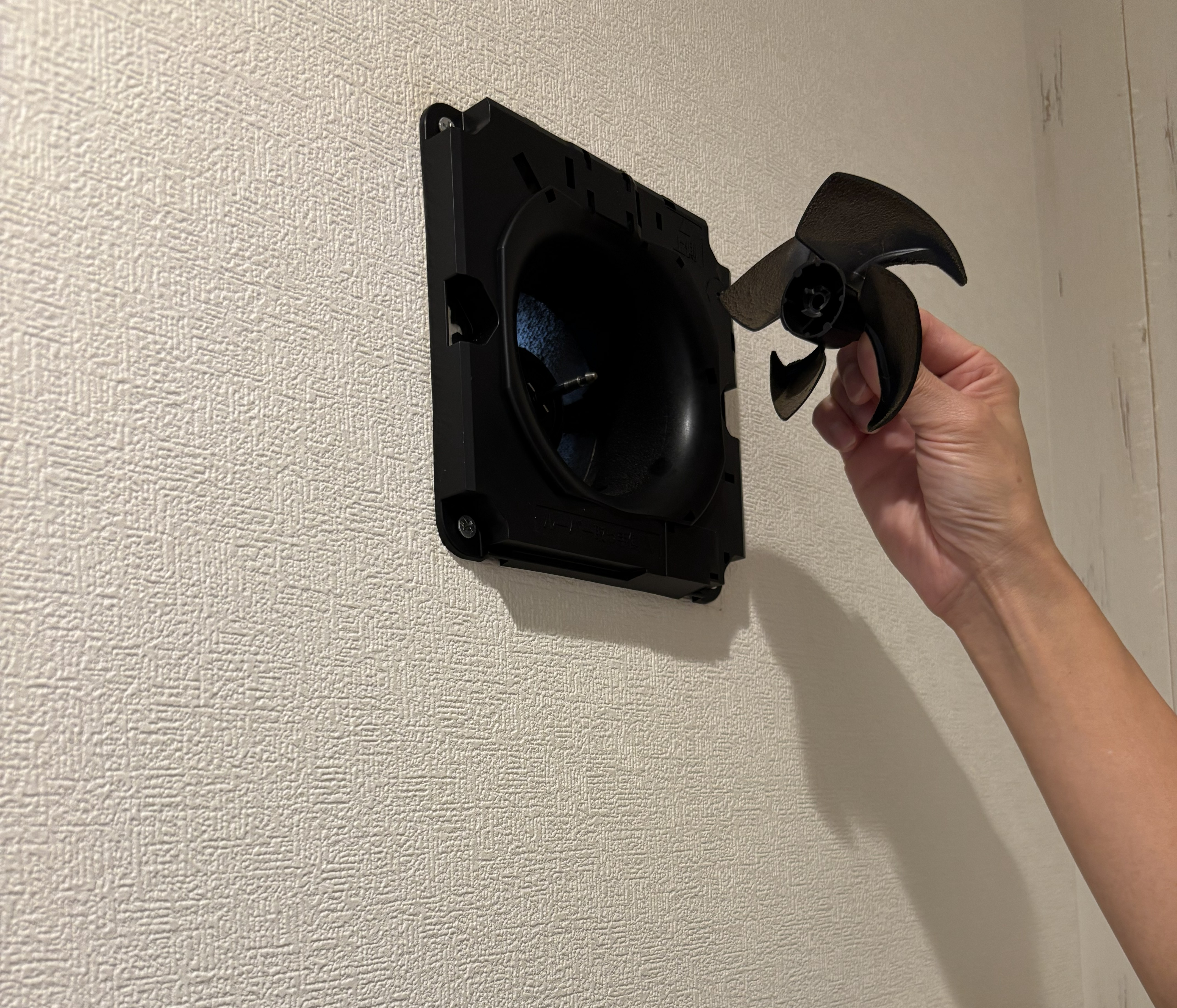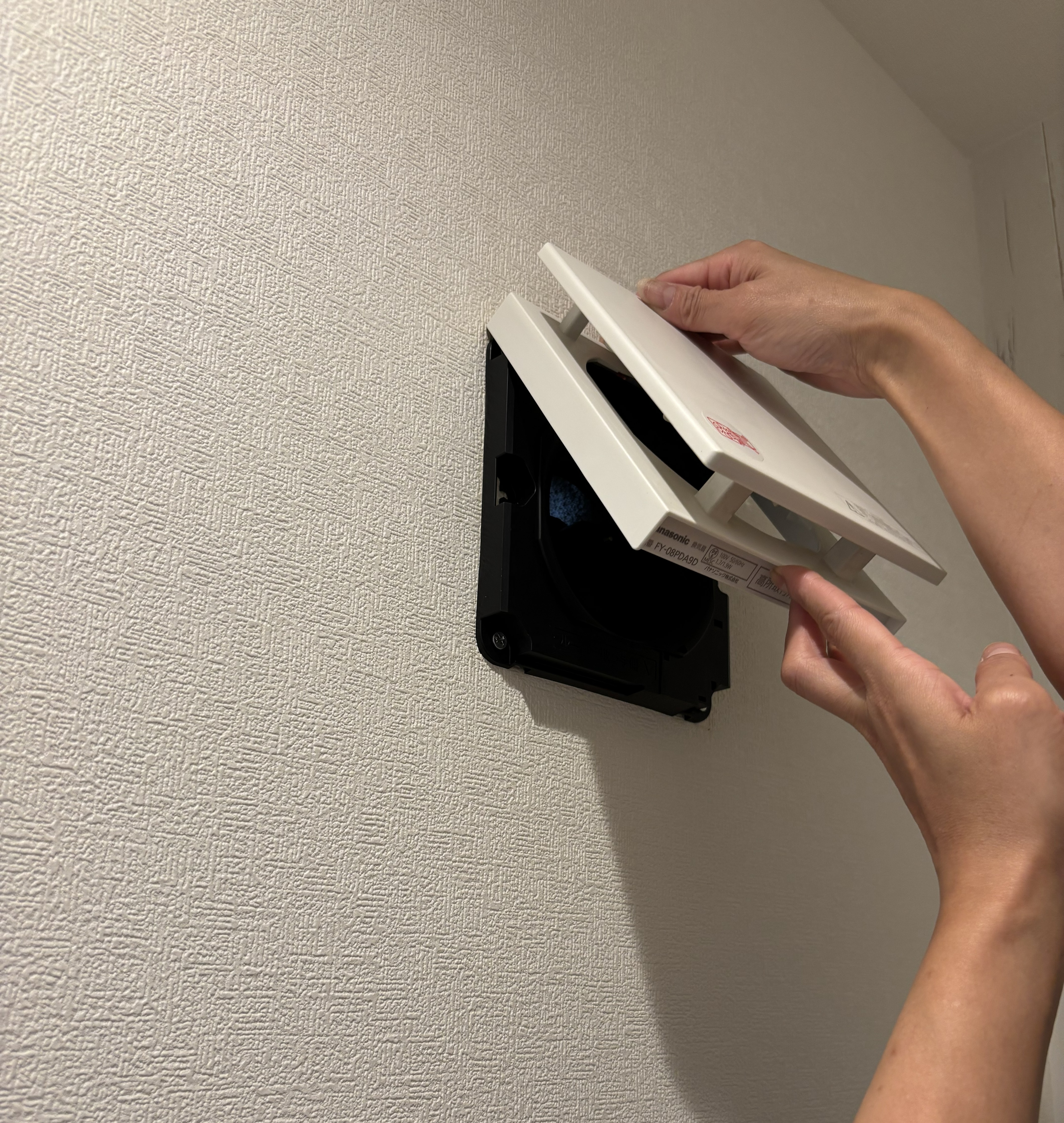 ③換気扇の上部を押さえながら手前に引っ張ると外しやすいです。