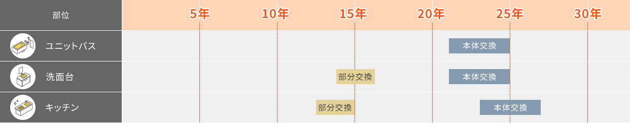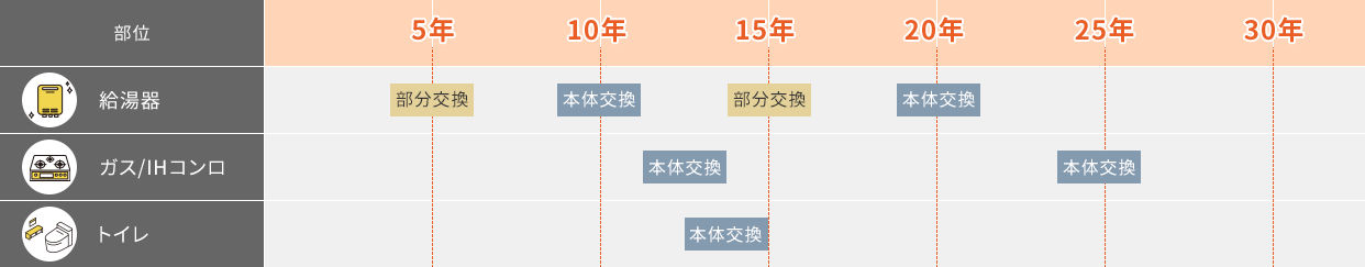 メンテナンスの目安時期一覧表 ※おおよその目安です。仕様により異なります。