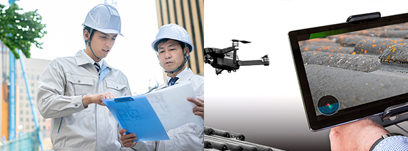 建物構造部の劣化や不具合の発見・処置が遅れないよう”30年無償定期点検”や”ドローン点検”を実施。自社建物に精通したプロの目線で定期的にチェックすることで過剰な早期工事や手遅れになるケースを防ぎ、適正時期に適切なメンテナンス内容をお伝えしています。