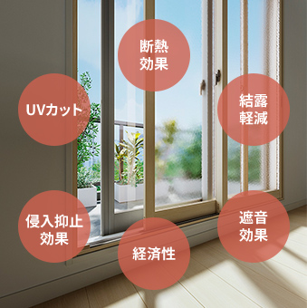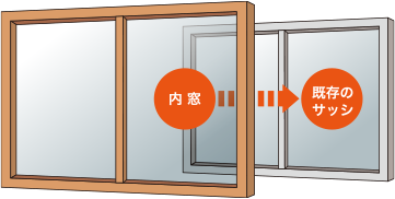 既存のサッシに室内側から新しい窓を取り付けるだけで