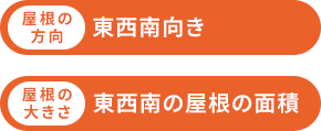 効果が高いのは、方角が東西南向きの面積が大きい屋根への設置です。南向きはもちろんのこと、東西の片流れ屋根にもおすすめです。また、寄棟屋根でも屋根形状に合わせて最適なプランをご提案しております。